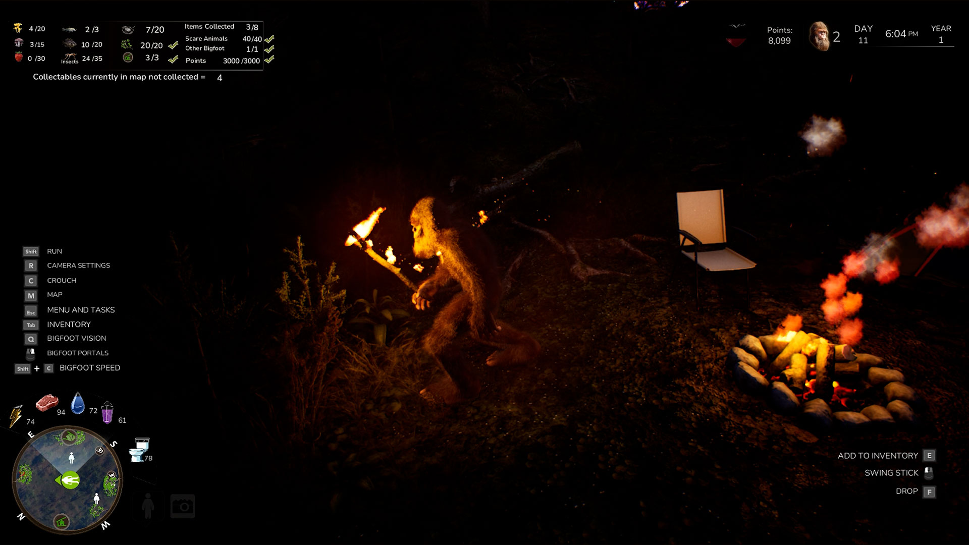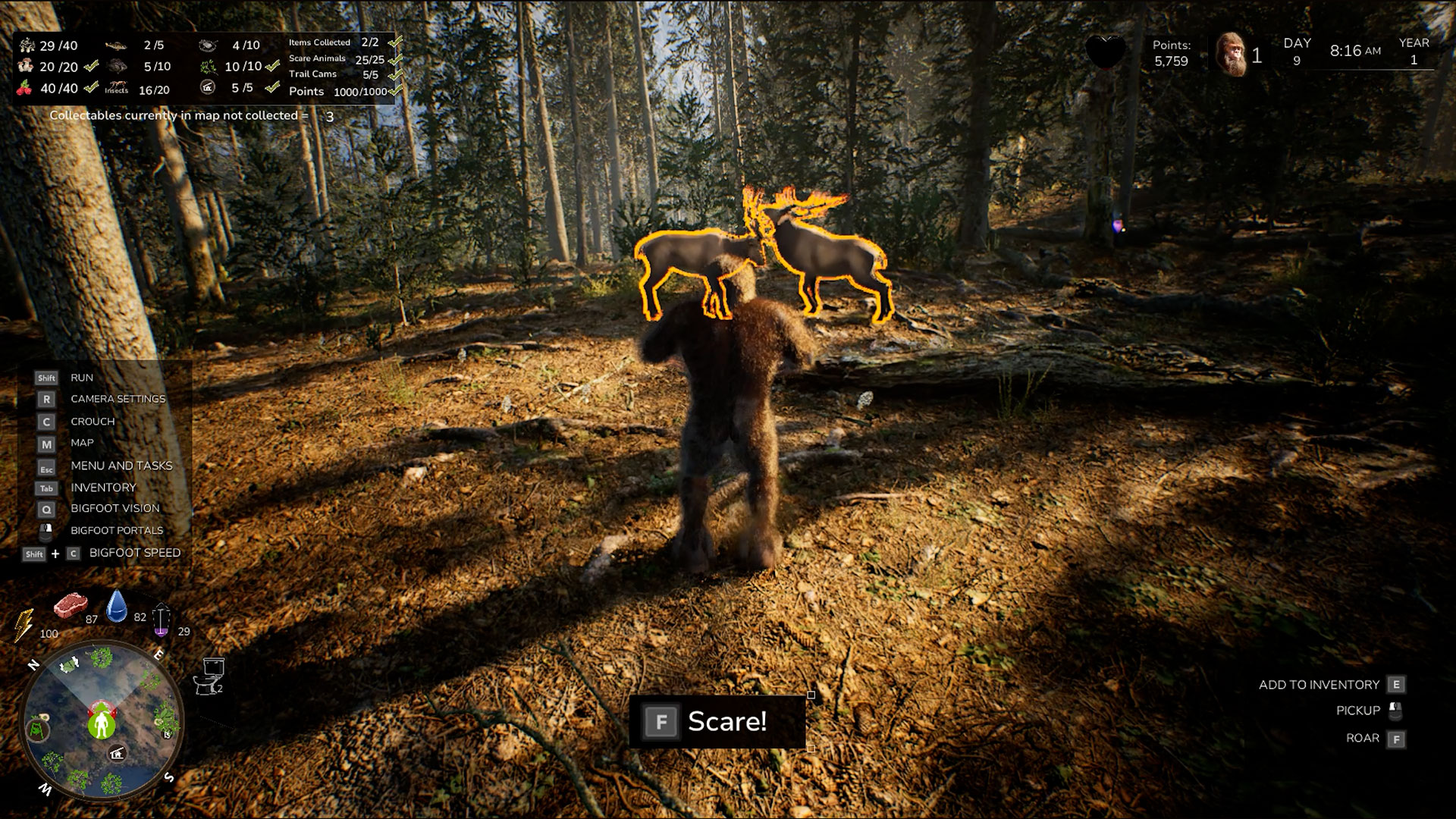 - Acquire Bigfoot Skills like Bigfoot Vision, Speed, Portals, and Fog.